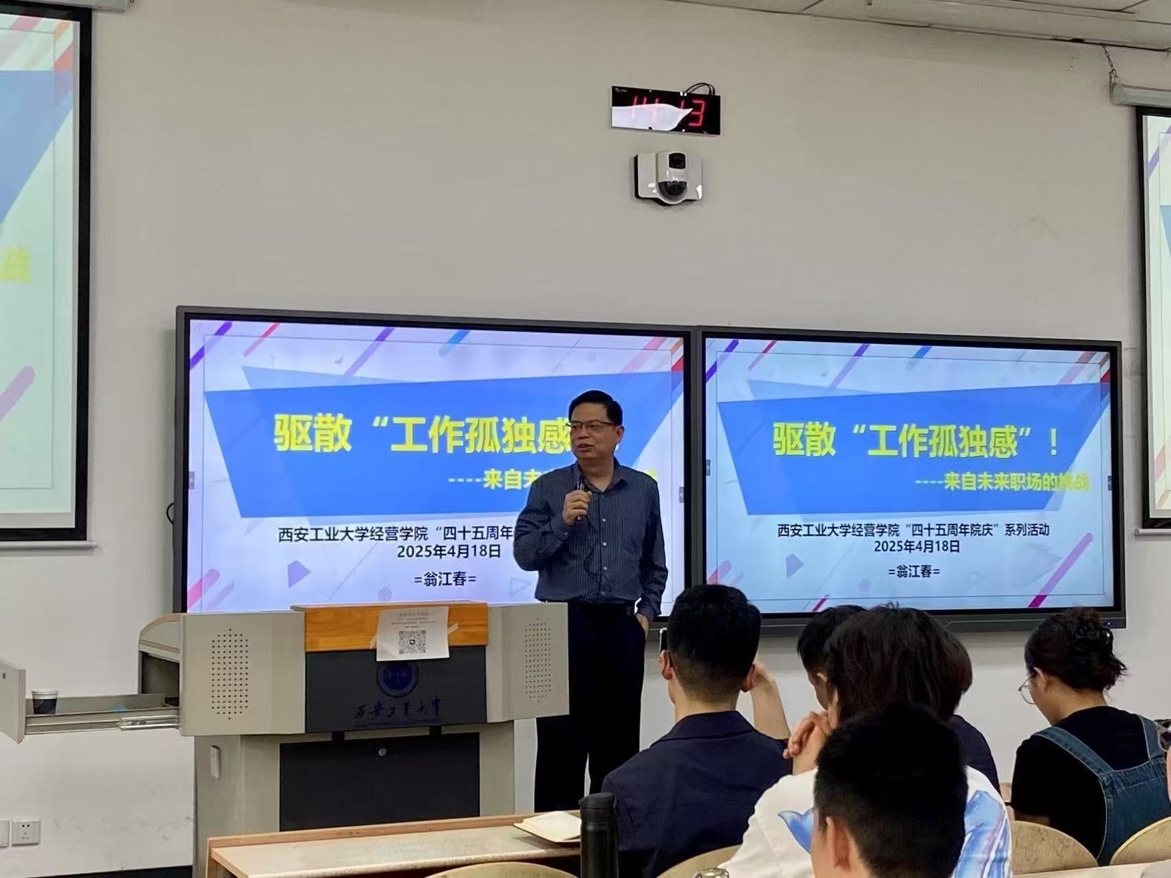 赵公民、翁江春、马宝龙分别做题为《如何把握一门课,讲好一堂课》《驱散“工作孤独感”,来自未来职场的挑战》《科学管理体系的范式与迭代——学科知识与理论研究的价值》的报告,内容涵盖教育教学、企业经营、科学研究等方面。在互动环节中,师生们踊跃提问,与专家学者展开热烈讨论。